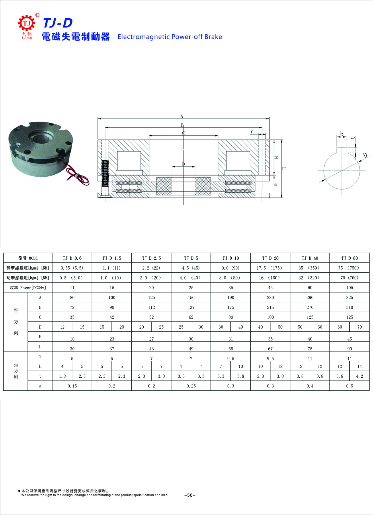天機傳動斷電剎車器安裝尺寸及規格型號參數如下: